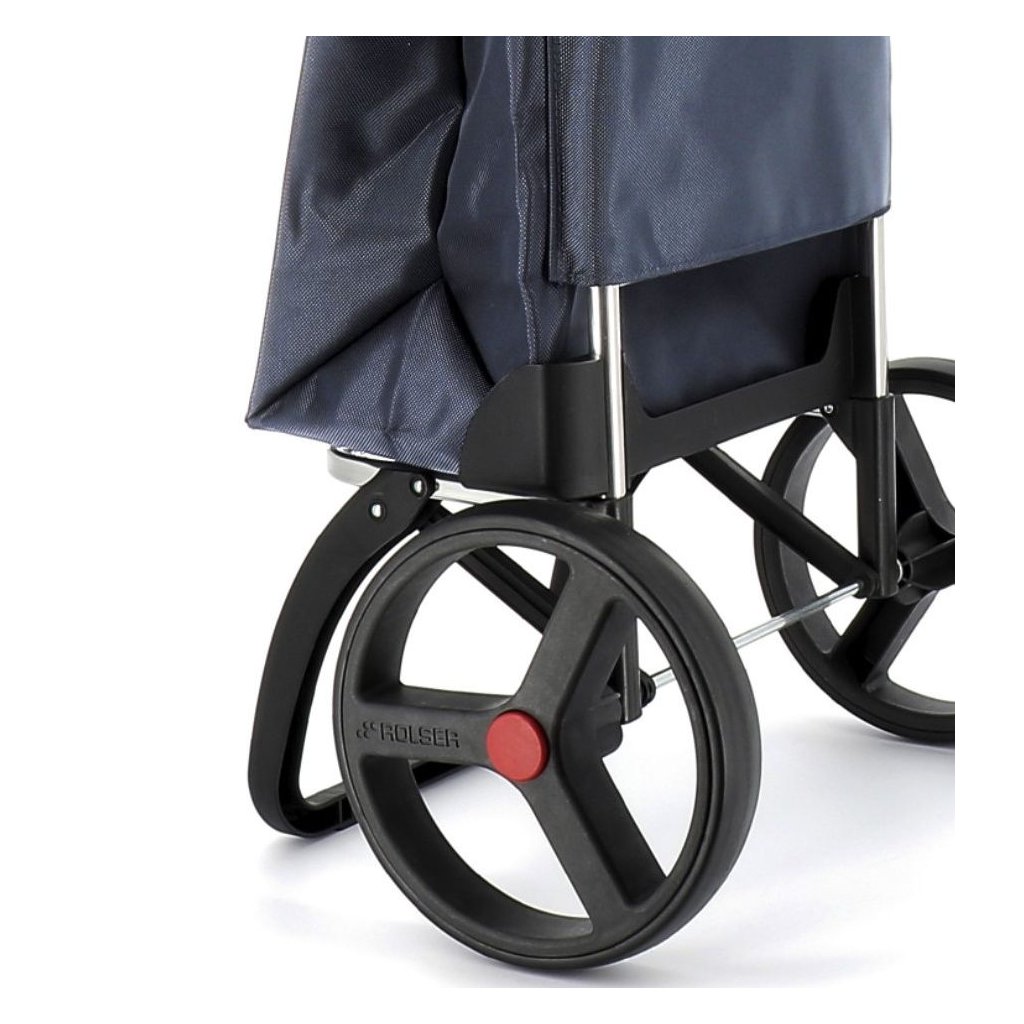 Mezi nejpraktičtější podvozky Rolser patří bezesporu Logic RSG, který vyniká hned několika užitečnými vlastnostmi. Tou hlavní je určitě dvojitý skládací systém, díky němuž lze nejen složit přední oporu, která slouží k odstavení tašky do prostoru, ale také samotnou konstrukci. Pomocí bočních ovladačů (červené body) se totiž snadno složí na polovinu a lze ji pak jednoduše uložit nebo převážet v autě. Další praktickou vychytávkou je integrovaný úchyt, který slouží pro zavěšení tašky na nákupní vozík a není tak nutné tašku nikde odkládat. Úchyt je zároveň opatřem drobnými háčky, které při provozu slouží k zavěšení klasických tašek, sáčků apod. Ergonomické protiskluzové držadlo zajišťuje komfortní úchop a přispívá tak ke snadné manipulaci. Výška konstrukce 108 cm je vhodná i pro uživatele vyšší postavy.