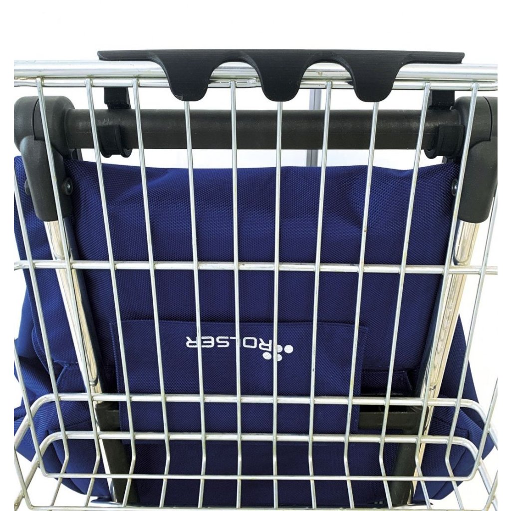 Mezi nejpraktičtější podvozky Rolser patří bezesporu Logic RSG, který vyniká hned několika užitečnými vlastnostmi. Tou hlavní je určitě dvojitý skládací systém, díky němuž lze nejen složit přední oporu, která slouží k odstavení tašky do prostoru, ale také samotnou konstrukci. Pomocí bočních ovladačů (červené body) se totiž snadno složí na polovinu a lze ji pak jednoduše uložit nebo převážet v autě. Další praktickou vychytávkou je integrovaný úchyt, který slouží pro zavěšení tašky na nákupní vozík a není tak nutné tašku nikde odkládat. Úchyt je zároveň opatřem drobnými háčky, které při provozu slouží k zavěšení klasických tašek, sáčků apod. Ergonomické protiskluzové držadlo zajišťuje komfortní úchop a přispívá tak ke snadné manipulaci. Výška konstrukce 108 cm je vhodná i pro uživatele vyšší postavy.