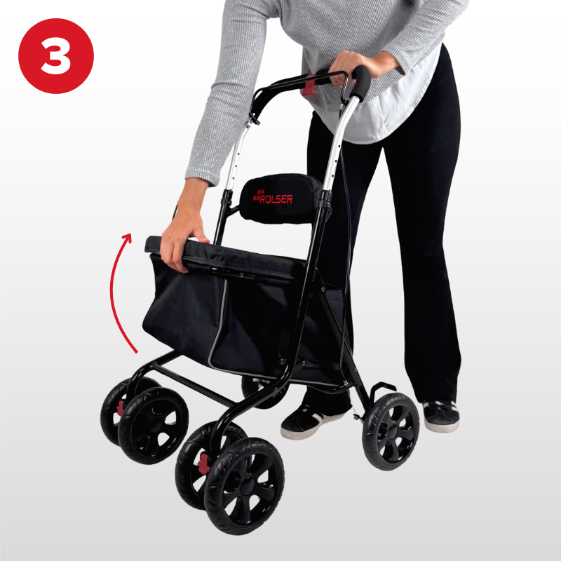 Rolser Kadira LN 4 Walk - nákupní vozík na kolečkách, se sedátkem a brzdou, černá