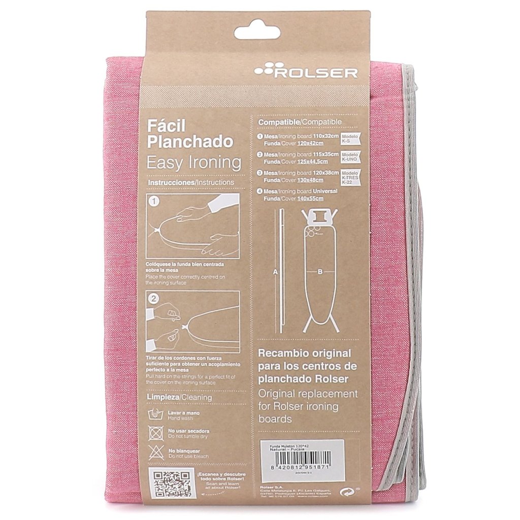 Rolser potah na žehlící prkno 115 x 35 cm, vel. potahu M, 125 x 44 cm, růžový